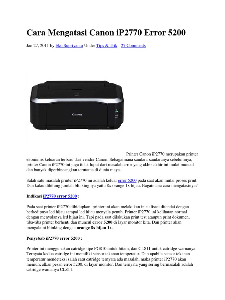 Cara Mengatasi Canon Ip2770 Error 5200